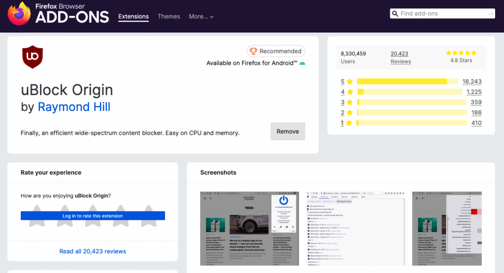 Una vez que tengas Firefox, el siguiente paso es instalar la mejor extensión para bloquear anuncios: uBlock Origin.